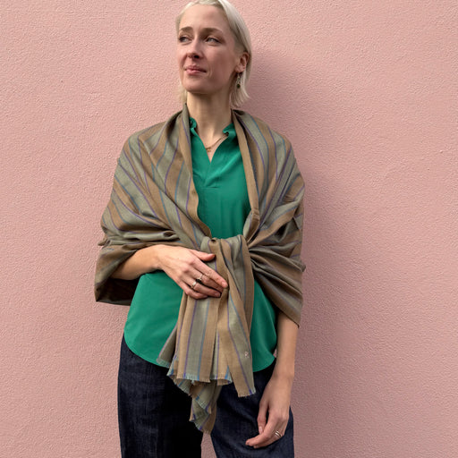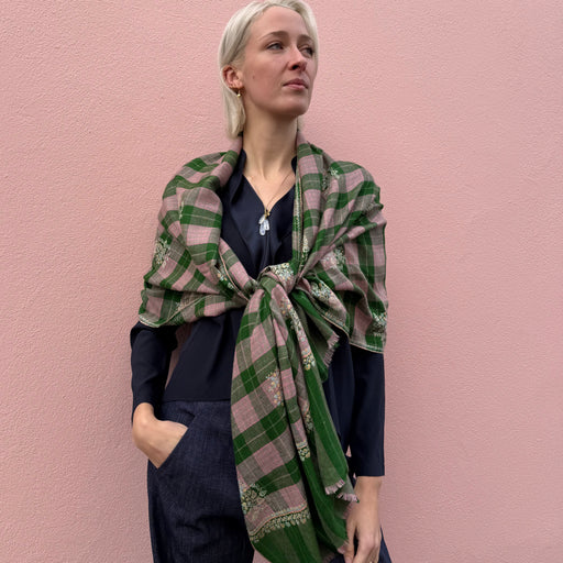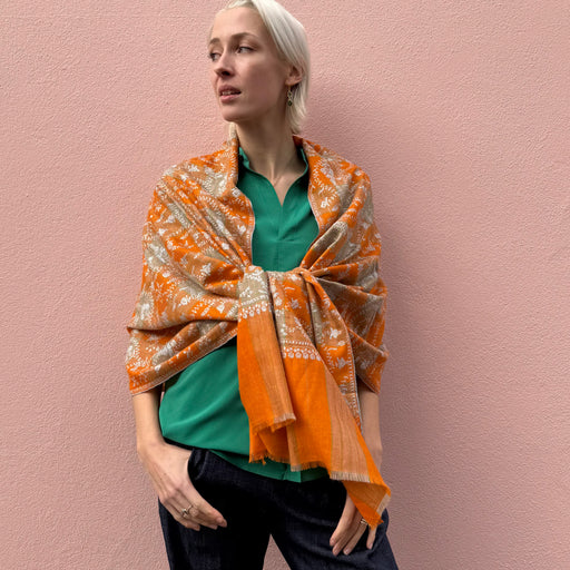 Yaser Shaw produces hand made fabrics that embed his creative Kashmiri upbringing with an extraordinary sensibility and an astonishing amount of expertise. The artisans employed in his family’s workshops play a vital role in the making process because they are the true upholders of generations’ old-traditions and techniques. Shaws' exquisite sense of style ensure that every scarf is an heirloom piece finished to perfection.