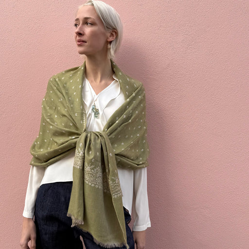 Yaser Shaw Olive with Mini Bouquet Embroidered Shawl