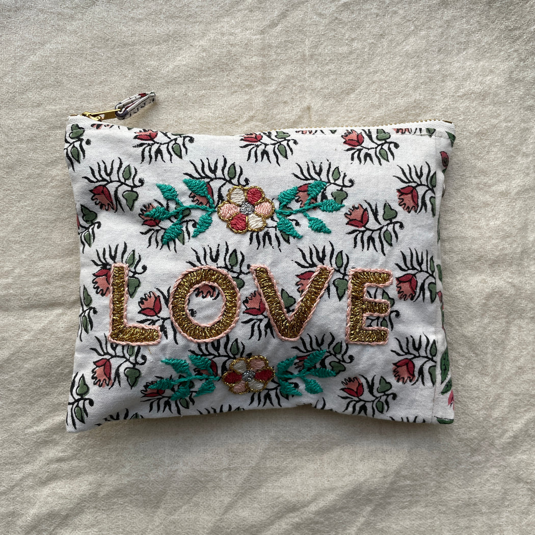A zip pouch hand-embroidered in Senegal, with the CSAO signature wording, this clutch makes a great travel wallet, make-up bag or clutch bag!