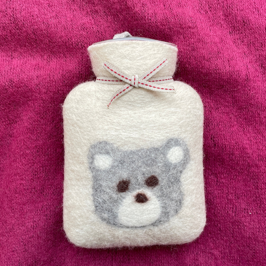 Dorothee Lehnen Bear Face on Cream Mini Hot Water Bottle