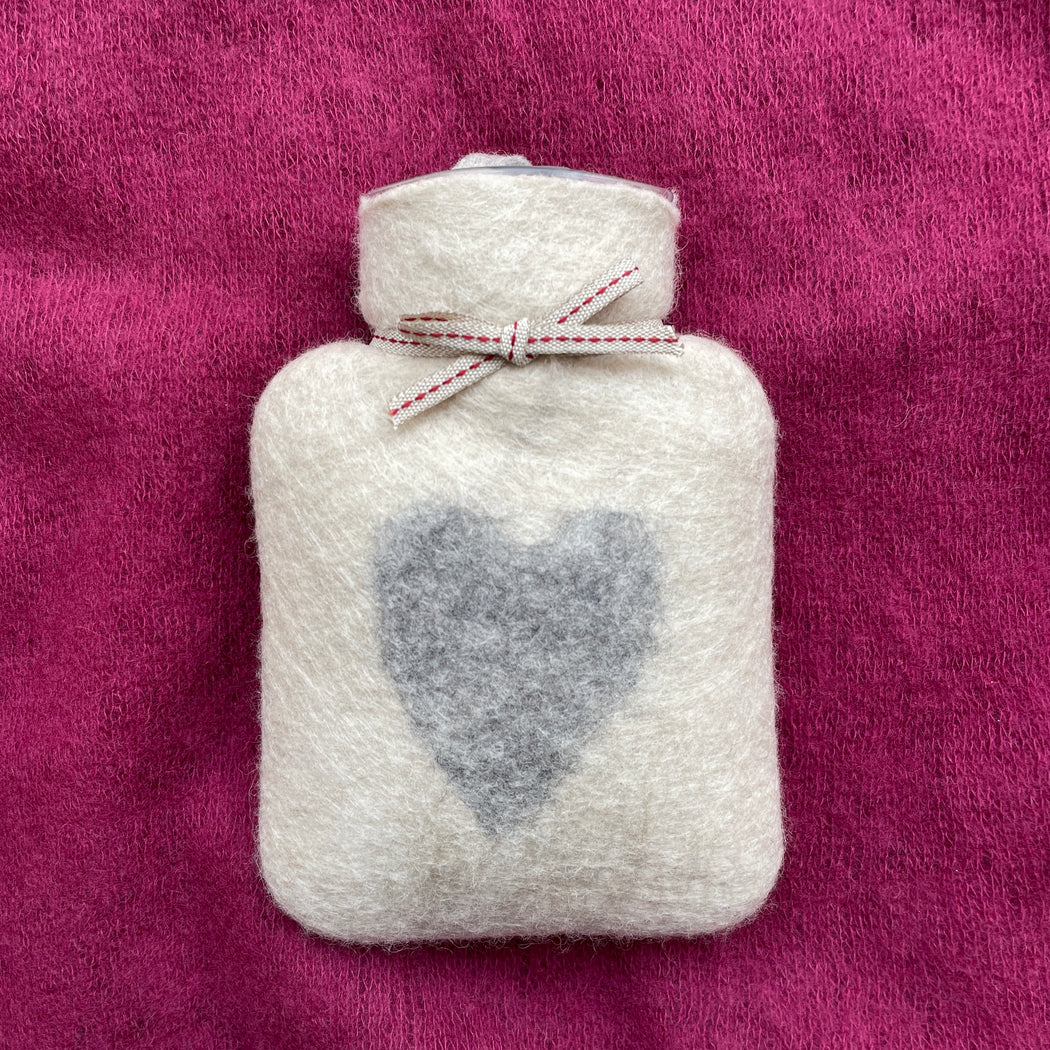 Dorothee Lehnen Light Grey Heart on Cream Mini Hot Water Bottle