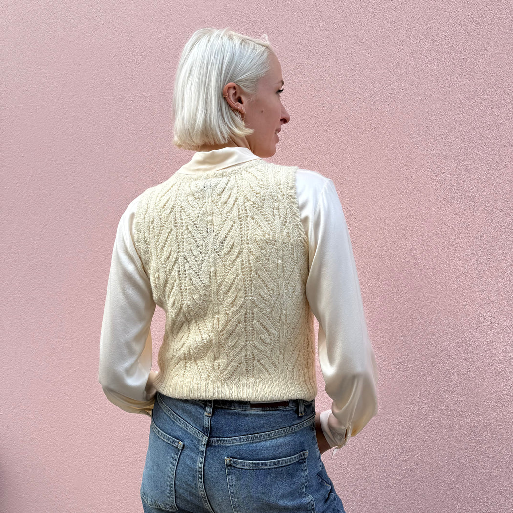 The Wyre Vest is made from Herd Wool - sustainable soft Bluefaced Leicester sheep wool grown N.W. England and processed within 150 miles of the farms according to Fibreshed principles. The yarn is either undyed or dyed using plant extracts and naturally occurring mordants. The buttons are made from nuts, our labels are 100% cotton, so your knit is fully circular.