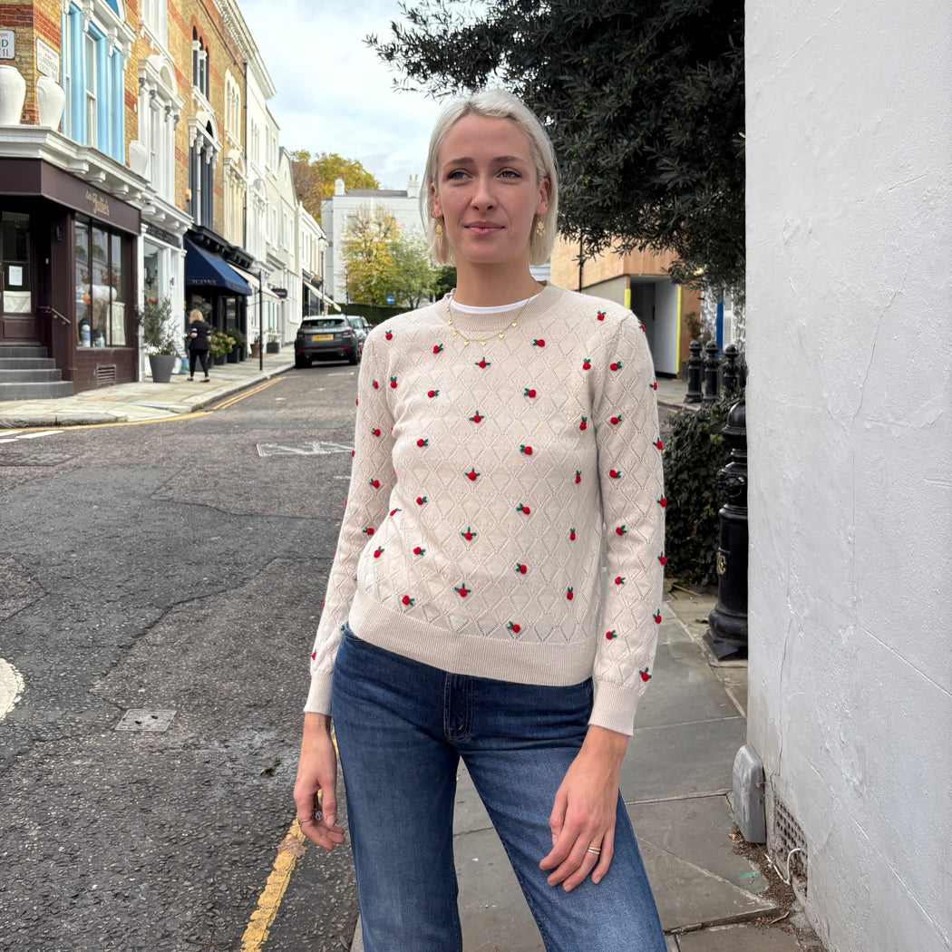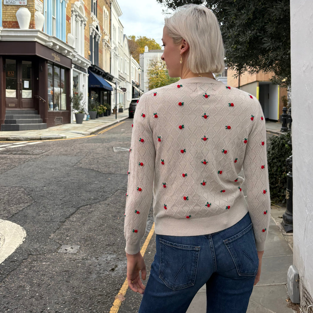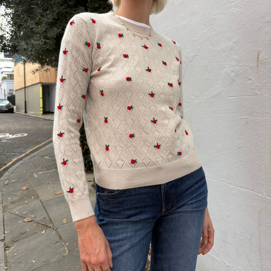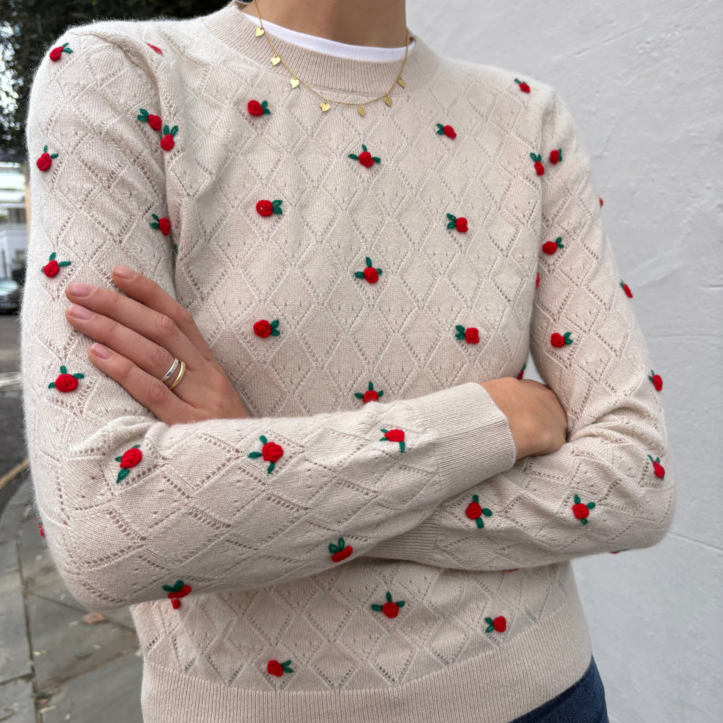 Jumper 1234 White Stone with Red Flowers Sweater