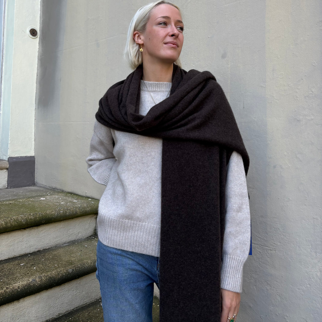 Pure simplicity in cashmere. this felted shawl is extra soft due to its felted nature, and contains more cashmere in it, condensed. a warming and stylish piece for years to come.